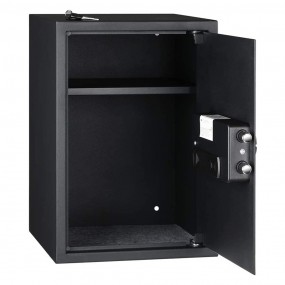 Le coffre-fort de sécurité ST-50 FP avec un volume intérieur de 42,5 L est la solution idéale pour vous protéger contre le vol de vos objets de valeur. Son boitier en acier trempé de 2 mm d’épaisseur le rend presque impossible à fracturer et sa porte de 5 mm d'épaisseur est sécurisée par deux boulons de verrouillage de 20 mm de diamètre chacun. Le déverrouillage du mécanisme du coffre-fort du fait de 2 manières différentes.