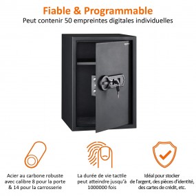 Coffre-fort biométrique à empreintes digitales acier carbone 50FIC