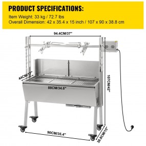 Grill Rotatif Barbecue Charbon électrique Bbq Rôtissoire Acier Inox - 60 Kg