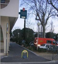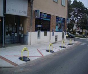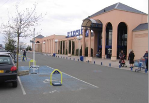 Supermarchés: Devant les supermarchés, le RESERV’PARC assure la disponibilité des places destinées aux personnes à mobilité réduite. |