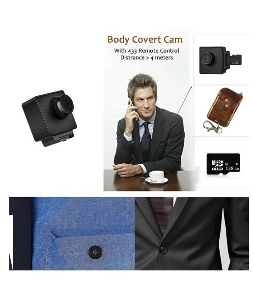 Mini caméra de buton espion avec une pleine résolution HD 1080p 30FPS, télécommande et microphone intégré + carte TF 128 GB Cette caméra de bouton avec télécommande est conçu pour vous offrir une expérience d'enregistrement discrète et efficace. Avec une Résolution FHD 1920 x 1080p à 30 ips avec microphone intégré, capturer images et vidéos Haute qualité avec des détails nets et des couleurs éclatantes. la caméra possède également une télécommande sans fil 2.4G qui vous permet de l'utiliser à une distance de Jusqu'à 4 mètres, vous donnant la flexibilité de contrôler l'enregistrement et les vibrations pour connaître le mode sans avoir à être à proximité de l'appareil. Que vous souhaitiez l'utiliser pour la surveillance ou pour capturer des moments spéciaux, cette caméra répond à vos besoins. Vous disposerez d'un espace de stockage suffisant pour stocker tous vos enregistrements. Avec les Formats vidéo AVI, M-JPEG cette caméra assure une lecture fluide et est compatible avec la plupart des lecteurs multimédias. La caméra a une batterie de 250 mAh offrant jusqu'à 90 minutes d'autonomie batterie à pleine charge. Aussi, la caméra peut fonctionner pendant la charge, vous offrant une plus grande flexibilité et un temps d'enregistrement accru. Avec un Angle de vision de 72 degrés, cette caméra offre une large couverture et capture une vue panoramique. Que vous ayez besoin d'enregistrer dans un cadre professionnel ou dans votre vie de tous les jours, cette caméra est prête à relever le défi. Le design compact et discret de cet appareil photo le rend idéal pour une utilisation dans une variété de situations. Que vous le placiez sur vos vêtements, sur un objet ou n'importe où vous voulez, il passera inaperçu et vous permettra de capturer des moments importants sans attirer l'attention. En bref, la Remote Button Camera est un puissant outil d'enregistrement qui combine des fonctionnalités de haute qualité, facilité d'utilisation et discrétion sur un seul appareil. Que ce soit à des fins de surveillance, d'enregistrement professionnel ou simplement pour capturer des souvenirs spéciaux, cette caméra est votre 1 x bouton de télécommande de caméra 1 télécommande 1 x kit de boutons 1 lecteur USB-MicroSD 1 x câble de charge et de transfert USB 1 manuel d'instructions. 1x carte TF 128 GB