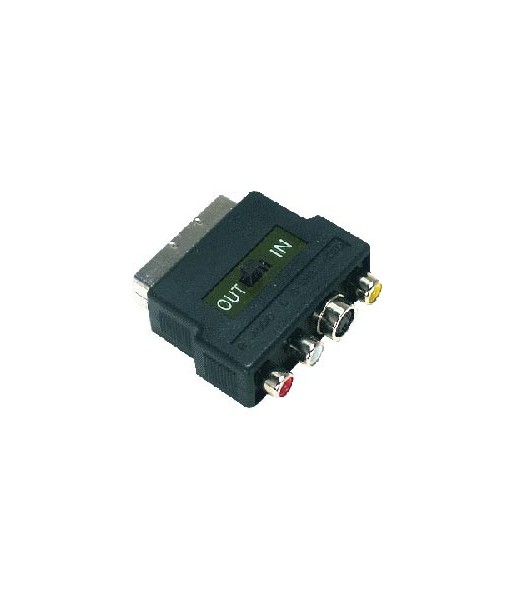 Adaptateur péritel mâle vers 3 RCA femelle + S vidéo fem.+ Commutation In/Out Spécifications :