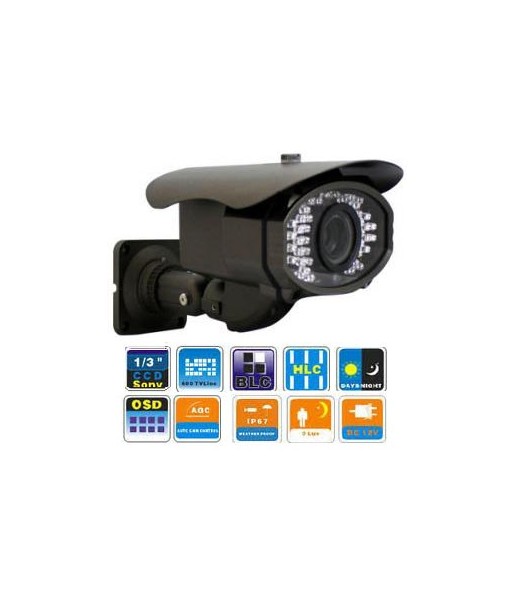 Caméra couleur J/N extérieur CCD 1/3" - 700 LTV - Angle de vue 100° - avec vision nocturne de 50m