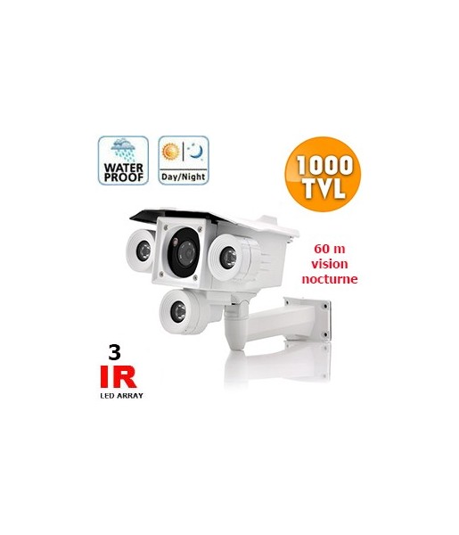 Doté d'un puissant capteur couleur CMOS 1/3" pour une qualité d'image exceptionnelle, cette caméra CCTV (en circuit fermé) de vidéo-surveillance a un rapport qualité prix et performance incroyable. A utiliser aussi bien le jour (1000 ligne TV!) que la nuit (3 LEDs infrarouges pour voir dans l'obscurité à une distance de plus de 60 mètres!).