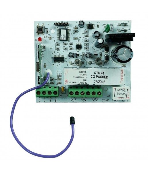 PACK CTH41 SET Carte électronique Ducati Home Automation CTH41 + 2 télécommandes à code variable PULT 6203R PACKAGE COMPOSÉ d'1 carte électronique CTH41 + 2 télécommandes à code variable PULT 6203R. Carte électronique d'entrée de gamme pour ouvre-portails à double battant de petite taille et légers. Doté de DUCO SAFE : le système de sécurité de détection d'obstacles garantit une sécurité d'utilisation maximale à votre famille. Doté de la transmission radio à code tournant de DUCATI (réception radio embarquée et câble d'antenne). Idéal pour les portails battants légers, petits et légers.