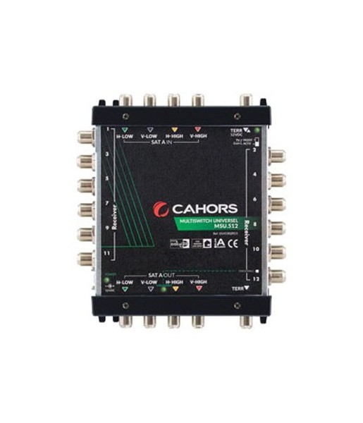 Commutateur DiSEqC Multiswitch Universel - Cahors MSU 512 - 1 Satellite + Terrestre, 5 entrées, 12 sorties