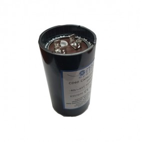 Condensateur permanent 40 μF/450Vac pour moteurs électriques, condensateur de marche. La construction externe des condensateurs est dans un conteneur cylindrique avec un couvercle en PVC, connexion électrique au moyen d'un tuyau, installation mécanique au moyen d'un goujon et d'un écrou M8x1,25. Référence : CBBV60 40uF 450Vac