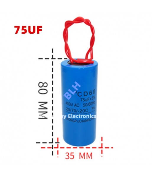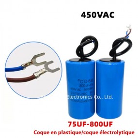 Condensateur de démarrage avec coque en plastique, cellule électrolytique, CD60, 450V, 450ylique, 75UF
