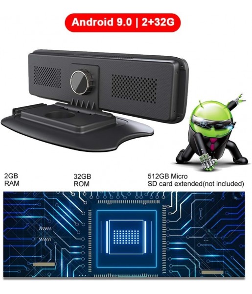 Camera de Voiture 4G Miroir Android 9.0: Enregistrement Panoramique 360° avec WiFi 12 Pouces, Support Spécial Rétroviseur Recul.