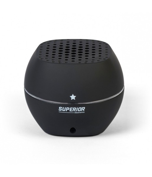 Enceinte sans fil Bluetooth portative – Superior SUPASB001 • Jusqu’à 4 heures de musique ininterrompue ; • Recharge en 90 minutes par câble micro-USB (fourni dans la boîte) ; • Compatible avec tout appareil qui supporte la même technologie sans fil, avec les ordinateurs Windows, Apple, smartphones et tablettes (iOS, Android, Windows Phone) ; • Sonorité importante dans un design pratique et compact pour l’emmener toujours avec vous ; • Portée jusqu’à 10 m ; DONNÉES TECHNIQUES: • Autonomie de la batterie à pleine charge : environ 3 h avec volume à 80% ; • Temps de charge : 1 h 30 ; • Alimentation (entrée) : 5V 500mA ; • Consommation puissance : 3W ; • Fréquence : 100 HZ-16 kHz ; • Impédance : 4 Ω. CONFIGURATION: Couplage BT facile en suivant les instructions du mode d’emploi. CONTENU DU BLISTER: Enceinte Bluetooth, câble micro USB, mode d’emploi en 6 langues. POIDS: 168 g. DIMENSIONS: 6,5 x 7,5 x 6,0 cm. BATTERIES: Lithium (intégrée).