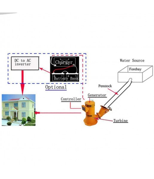 Micro hydro turbine électrique 3000W 220V hautes eaux, Hauteur d'eau 15-20m, débit d'eau 22-30 l/sec