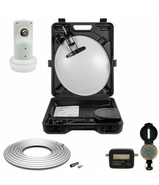 - Kit complet avec pointeur satellite, boussole, câble, support batterie et boîtier de transport ;