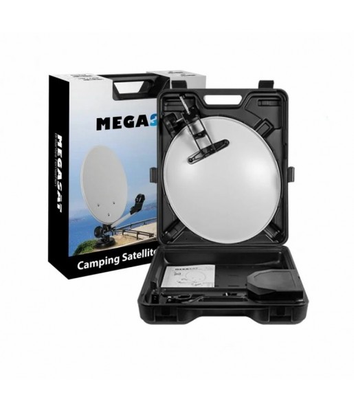 La valise de camping Megasat est constituée d'un plastique robuste et résistant aux chocs. La version standard est livrée avec un miroir satellite de 41 x 38 cm et diverses options de montage. Le pied à ventouse garantit une fixation solide et sûre du miroir sur toutes les surfaces lisses. Si le pied à ventouse ne peut pas être fixé, on peut utiliser le support sur pied ou sur mât pour le montage.