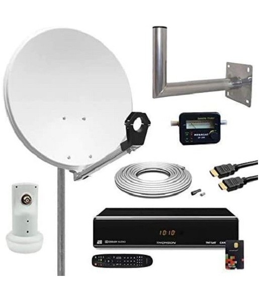 Kit Parabole Acier 65cm + Récepteur Tntsat + Lnb Single + Câble Coaxial 20m + Pointeur + Support Mural