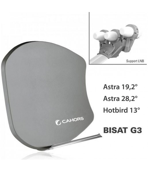 Antenne Multisatellite Cahors SMC Bisat 3 sorties + 3 LNB - Astra 19,2°, Astra 28,2°, Hotbird 13°