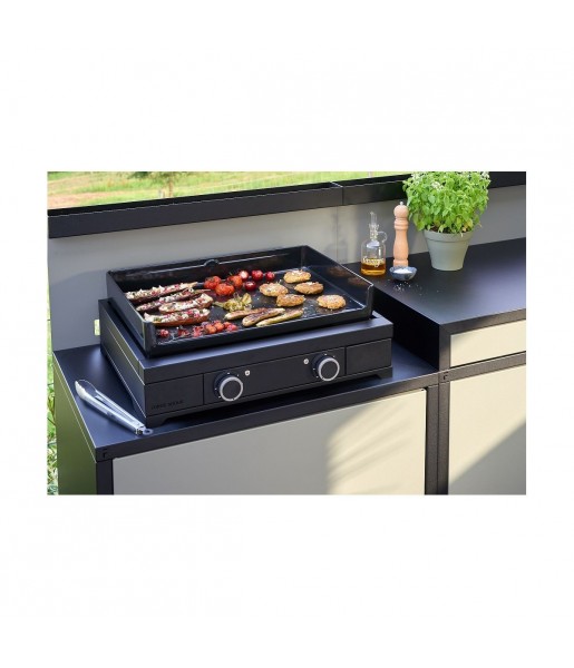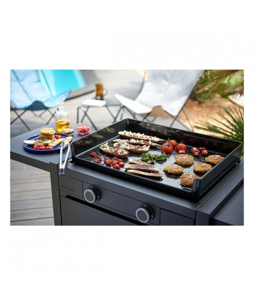 La durée de garantie est de 5 ans.Cuisson Nombre de personnesDe 6 à 8 personnes EnergieGaz Thermostat réglableOui Température maximum de cuisson300°C Rapidité de montée en température10 minutes Equipement Nombre de plaques1 plaque Plaque inclinéeOui Avantage de la plaque inclinéePour une évacuation optimale des graisses Plaque réversibleNon BoosterNon Système d'allumageFacile et rapide avec le piezzo MinuteurNon Crochets de suspensionNon Matiere et coloris De la surface de la plaqueFonte émaillée Du chassisAcier revêtement 3 couches ColorisNoir Facilite de nettoyage Plaque amovibleOui Résistance amovibleNon Thermostat amovibleNon Récupérateur de jus / graissesOui Agencement MobilitéEncastrable Avantage de la mobilitéEncastrable pour votre cuisine extérieure UtilisationIntérieur et extérieur Pieds réglablesPour l'installer à la hauteur que vous désirez CouvercleNon Pare-ventNon Tablette de travailNon Poignées de transportNon Espace de rangementNon Securite Poignée froideNon Voyant lumineux de fonctionnementNon Pieds antidérapantsOui Système de sécuritéOui Dimensions Dimension de la surface de cuisson60,5 x 42 cm Longueur du cordon électriqueNon concerné Dimensions l x h x p57.3 x 23.8 x 65.5 cm Poids Net (kg)21 Services inclus Fabriqué enEspagne Disponibilité des pièces détachées (données fournisseur)Pendant 10 ans, à compter de la date fin de commercialisation