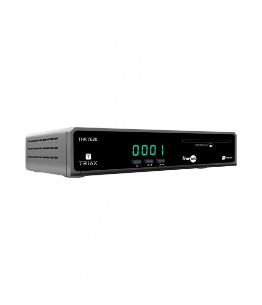 Le récepteur FRANSAT TRIAX THR 7630 allie à sa convivialité et à sa fiabilité une qualité d’image exceptionnelle. Il permet de recevoir et d’enregistrer les programmes diffusés en numérique en HD sur FRANSAT. Son port USB et ses fonctions multimédias permettent d’enregistrer, de stocker, de visionner des programmes, photos ou morceaux de musique contenus sur un support de stockage externe.