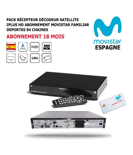 Pack Récepteur Décodeur Satellite iPlus HD + Abonnement TV Espagnol TV Movistar Familiar Deportes 18 mois 94 Chaînes