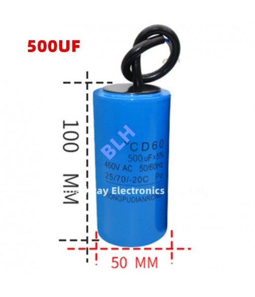 condensateur de démarrage avec coque en plastique, cellule électrolytique, cd60, 450v, 450ylique, 500uf