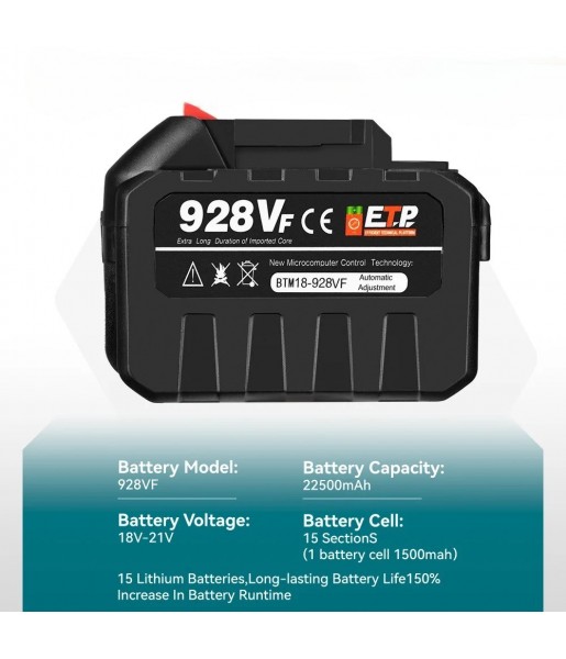 Batterie Lithium Rechargeable 20V, UE, 15000mAh, 928VF, 22500mAh, indicateur de capacité, pour perceuse électrique, tronçonneuse