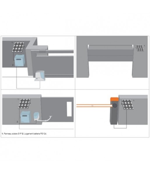 Ce kit pour l'alimentation solaire de système d'automatisation du portails, portes de garage et barrières levantes situés même à distance d'une alimentation électrique; et l'installation est simple et rapide, fonctionnement fiable et économique garanti.