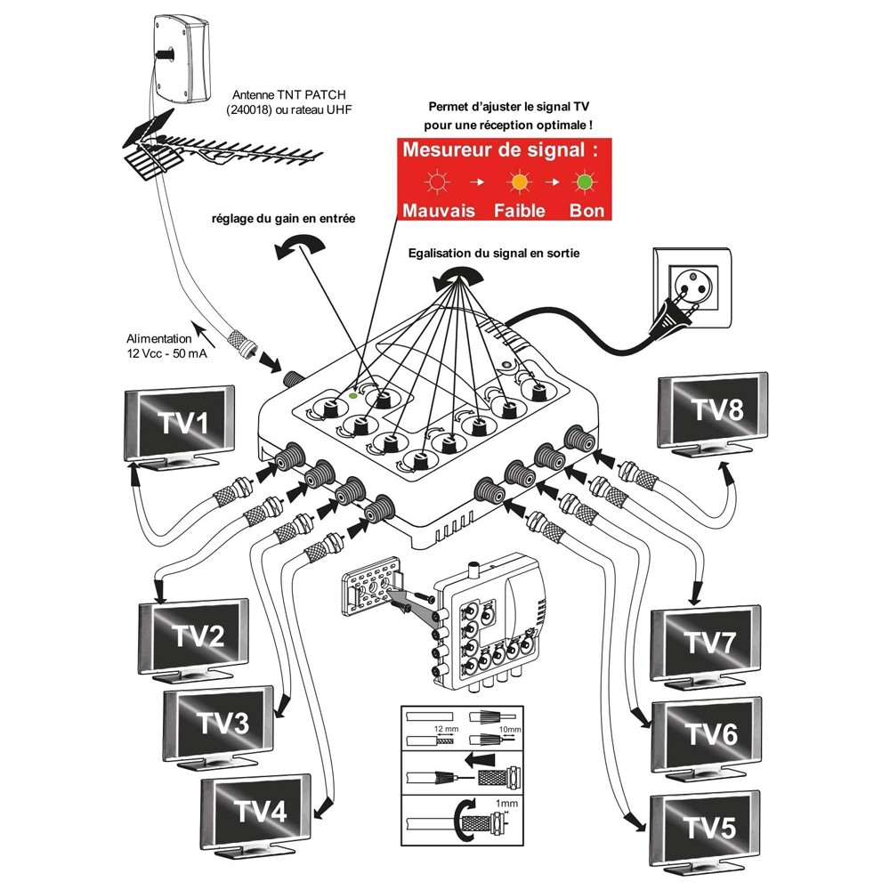 8 sorties TV TNT HD : permet de distribuer un signal amplifié vers huit téléviseurs ou récepteurs sans perte de qualité.