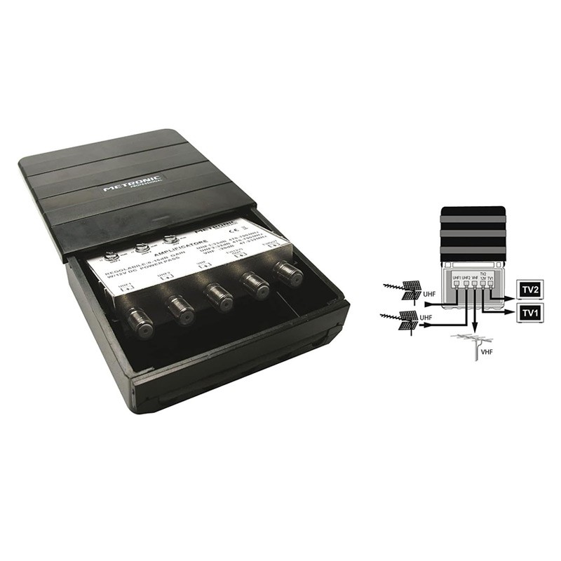 Amplificateur TV Audio avec Filtre LTE - 3 entrées UHF/UHF/VHF , 2 sorties TV