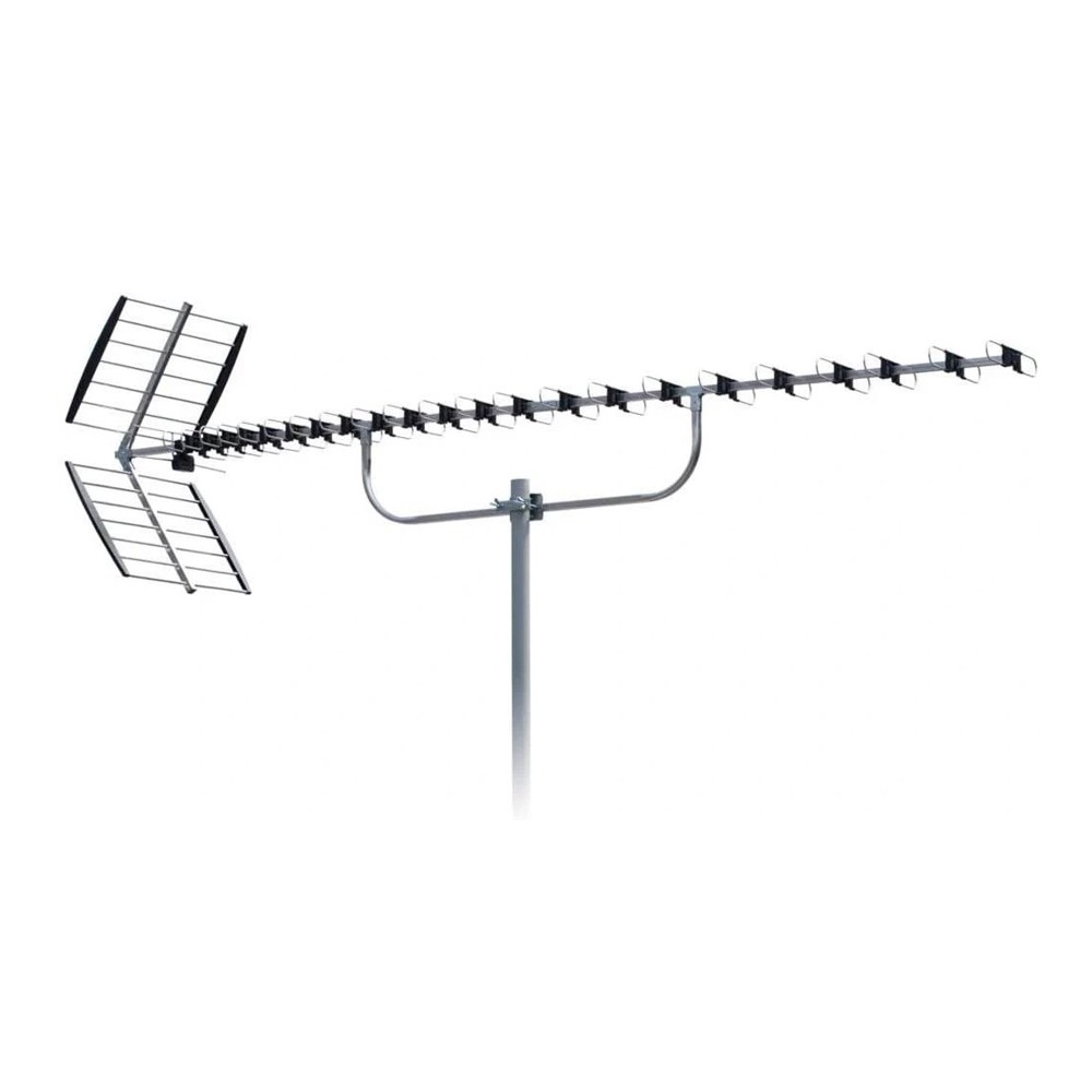 Conçue pour capter les chaînes en DVB-T et DVB-T2, cette antenne passive à haut rendement, équipée de 92 éléments, convient parfaitement aux environnements ruraux, périurbains ou à signal affaibli. Elle s’installe facilement sur un mât et résiste aux intempéries pour un usage extérieur durable.