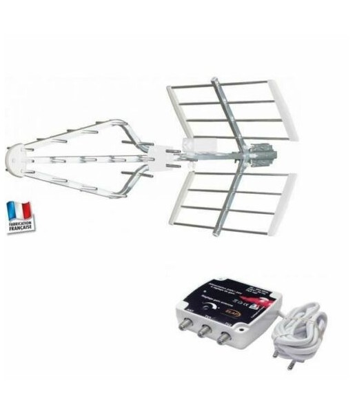Le pack contient une Antenne blanche amplifiée et réglable ainsi qu'une alimentation réglable à 2 sorties TV