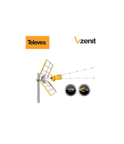 Antenne V ZENIT Televes - UHF C21-58/59/60 Réglable - TNT HD - Technologie CSG - LTE Ready - Gain 15 dB