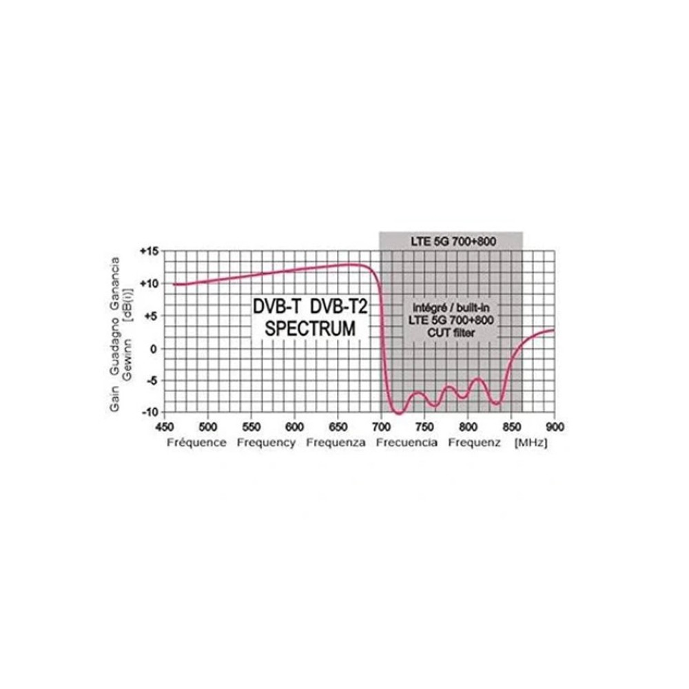 L’Antenne TV TNT Extérieure Trinappe DVB-T DVB-T2 13,5 dBi F Filtre Passif 4G LTE 5G NR 700 800MHZ 43 éléments est conçue pour offrir une réception stable et claire de la télévision numérique terrestre, même dans les zones où le signal est faible. Son gain élevé de 13,5 dBi et son filtre passif intégré permettent d’éliminer les interférences liées aux réseaux 4G et 5G, garantissant ainsi une qualité d’image impeccable et un son limpide.