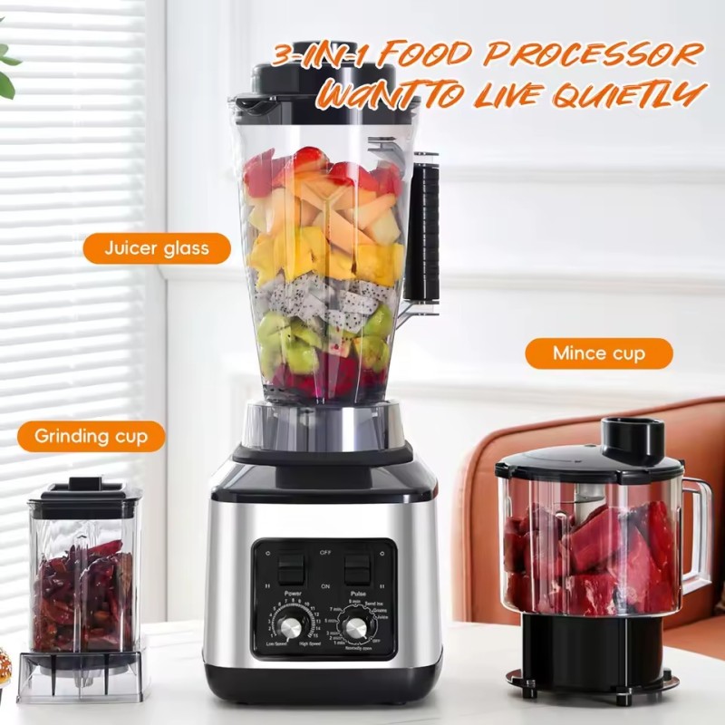 Blender 3-en-1 9500W avec minuterie, capacité de 3L, robot culinaire, moulin à épices, presse-agrumes, prise EU 220V, 3 vitesses, multifonctionnel