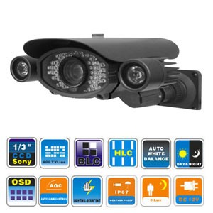 Caméra couleur J/N extérieur CCD 1/3" - 700 LTV - Angle de vue 65,3 °- avec vision nocturne de 100m