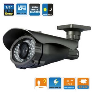 Caméra couleur J/N extérieur CCD 1/3" - 700 LTV - Angle de vue 90° - avec vision nocturne de 15m