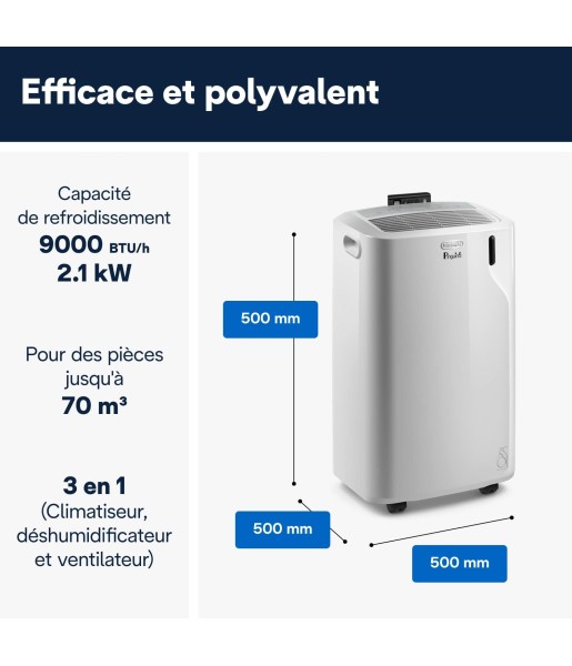Fonctions 3-en-1 : climatiseur, ventilateur et déshumidificateur (jusqu’à 40L/24h)