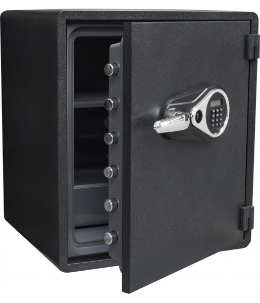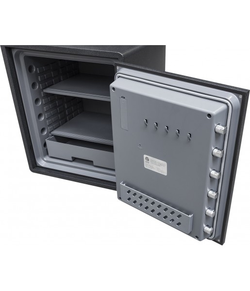 Le coffre-fort de sécurité ST-100 avec un volume intérieur de 43 L, est la solution idéale pour vous protéger contre le vol de vos objets de valeur. Son boitier en acier le rend presque impossible à fracturer grâce à sa porte de 5 mm d’épaisseur et à sa paroi ignifuge de 60 mm qui lui permet de résister jusqu’à 760°c maximum (ETL vérifiée).