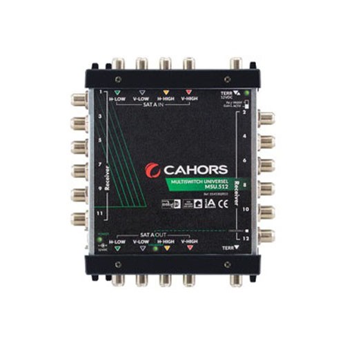 Commutateur DiSEqC Multiswitch Universel - Cahors MSU 512 - 1 Satellite + Terrestre, 5 entrées, 12 sorties
