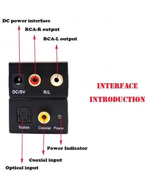 Compatibilité universelle : prend en charge les signaux audio numériques coaxiaux et Toslink (optique) et les convertit en sorties analogiques L/R RCA.