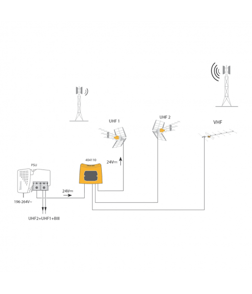 Ce coupleur est idéal pour des installations radio et TV qui nécessitent la gestion de plusieurs bandes de fréquence.