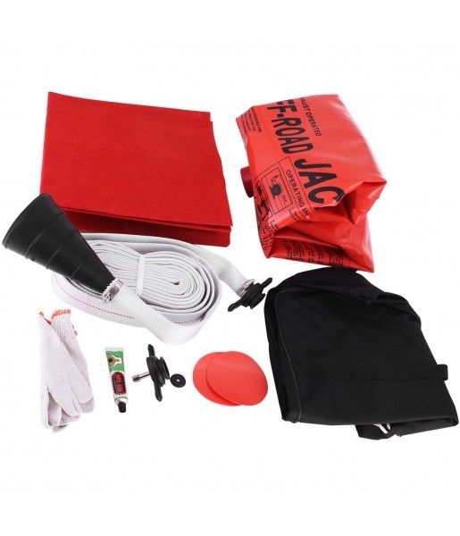 Un sac de transport facile à transporter est inclus dans le kit de gonflage et l'ensemble du kit peut être facilement rangé. Il contient également deux couvertures de protection pour empêcher le cric d'être percé par des objets pointus.