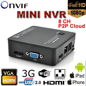 Enregistreur mini NVR - 8 canaux IP Cam - ONVIF - HD 1080p - E-SATA - P2P Cloud - VGA - HDMI - 2x USB - LAN