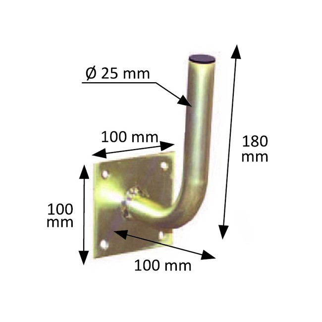 Support mural SAT en L, diamètre 25 mm avec déport 110 mm. Robuste, anticorrosion et facile à poser, idéal pour fixer antennes plates et patch en toute sécurité.