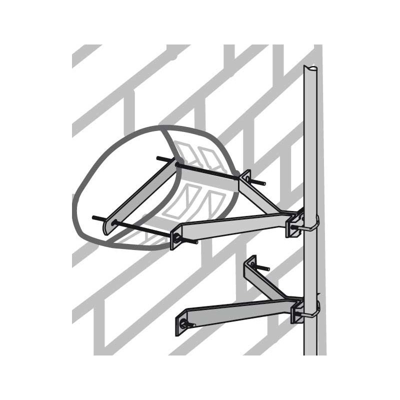 Fixation murale en Y avec contre plaque galvanisée, robuste et anticorrosion, idéale pour antennes TNT et satellite sur murs solides ou fragiles.