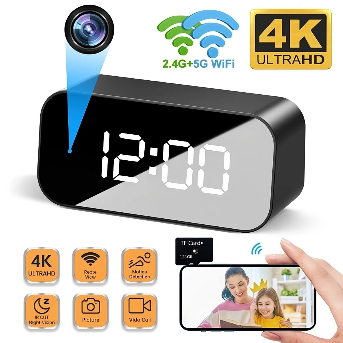 Assurer la sécurité de votre domicile tout en préservant l’esthétique de vos espaces devient facile avec la mini caméra d'horloge de Wifi. Ce dispositif innovant se présente sous la forme d’une horloge numérique classique intégrant une caméra espion 4K HD. Elle permet une surveillance discrète et efficace, avec une connexion WiFi compatible 2.4GHz et 5GHz, pour un accès en temps réel depuis votre smartphone, tablette ou ordinateur. Grâce à son capteur CMOS 2MP et son large angle de vision à 166°, elle couvre parfaitement une pièce entière sans éveiller les soupçons.