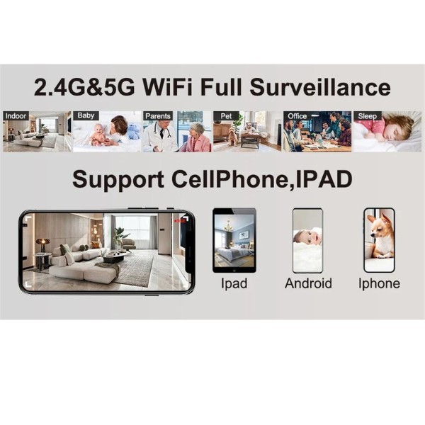 La mini caméra d'horloge de Sécurité WiFi est la solution idéale pour assurer la surveillance discrète de votre domicile ou bureau. Intégrée dans une horloge élégante et moderne, elle allie technologie de pointe et design épuré. Grâce à sa connectivité WiFi et ses fonctionnalités avancées, elle vous permet de garder un œil sur vos espaces en temps réel, sans éveiller les soupçons. Pratique, facile à installer et compatible avec Android et iOS, cette caméra révolutionne la sécurité intérieure.