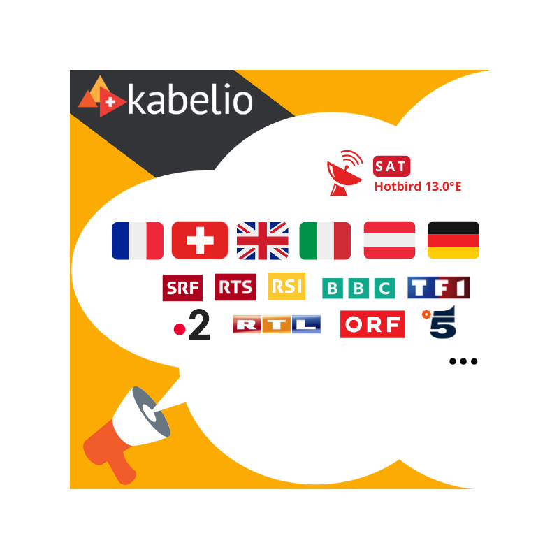 Ce pack inclut 3 mois d’accès à la plateforme Kabelio via le satellite Hot Bird 13° Est, permettant l’accès aux principales chaînes suisses (SRF, RTS, RSI) et européennes (BBC, ITV, ORF, TF1, France 2, ProSieben, RTL…), en HD et 4K pour une qualité d’image optimale.