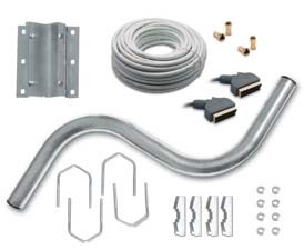 Kit de fixation pour antenne satellite et hertzienne METRONIC avec câble 20 m, bras robuste et accessoires complets pour une installation facile et durable.