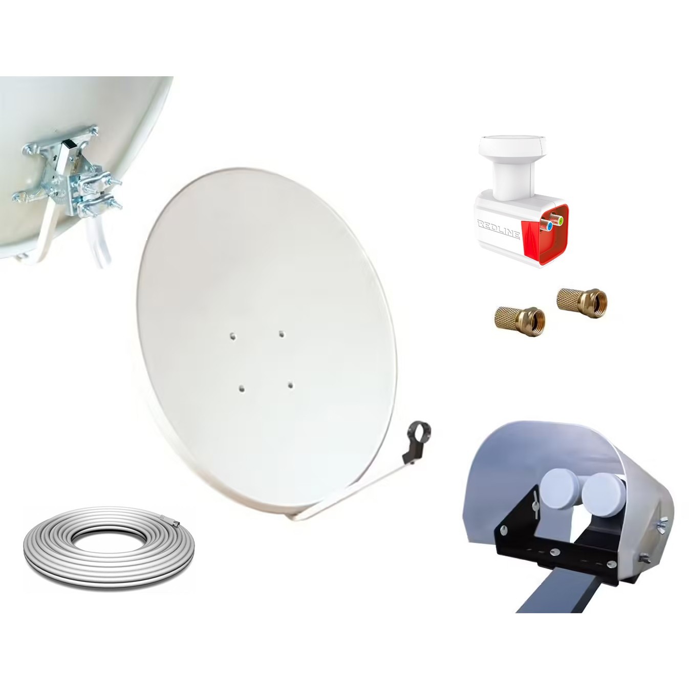 KKt Parabole 80cm Acier + LNB Twin 0,1 dB Full HD + Protection LNB Anti-pluie + 20m Câble Coaxial Twin + 2 Fiches F