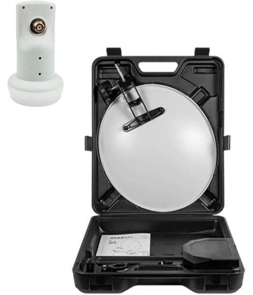 Compact et facile à transporter, le kit Megasat 35 cm avec parabole acier blanche et LNB Single 4K 0,1 dB est idéal pour capter les satellites Astra, Hotbird ou Eutelsat en camping-car ou en déplacement.