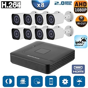 Pack de 8 caméras filaire 1080p étanche IP66 + Enregistreur DVR - HDMI - 5 modes d'enregistrement